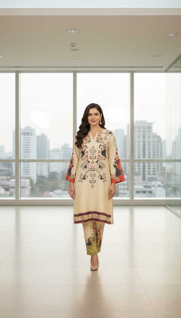 Radiate warmth and elegance in this stunning Swiss lawn coord set, adorned with delicate floral patterns in soft peach and orange hues. The intricately designed neckline and borders add a touch of sophistication, while the breathable fabric ensures all-day comfort. Perfect for casual gatherings or daytime occasions, this ensemble captures the essence of timeless femininity with a modern, graceful charm.