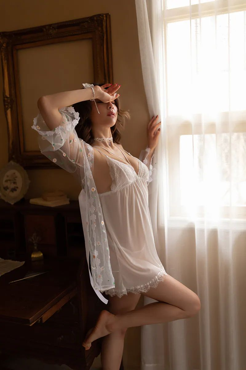 Elegance in Every Thread, a perfect blend of pristine white and delicate lace for a timeless nightwear experience ✨💤