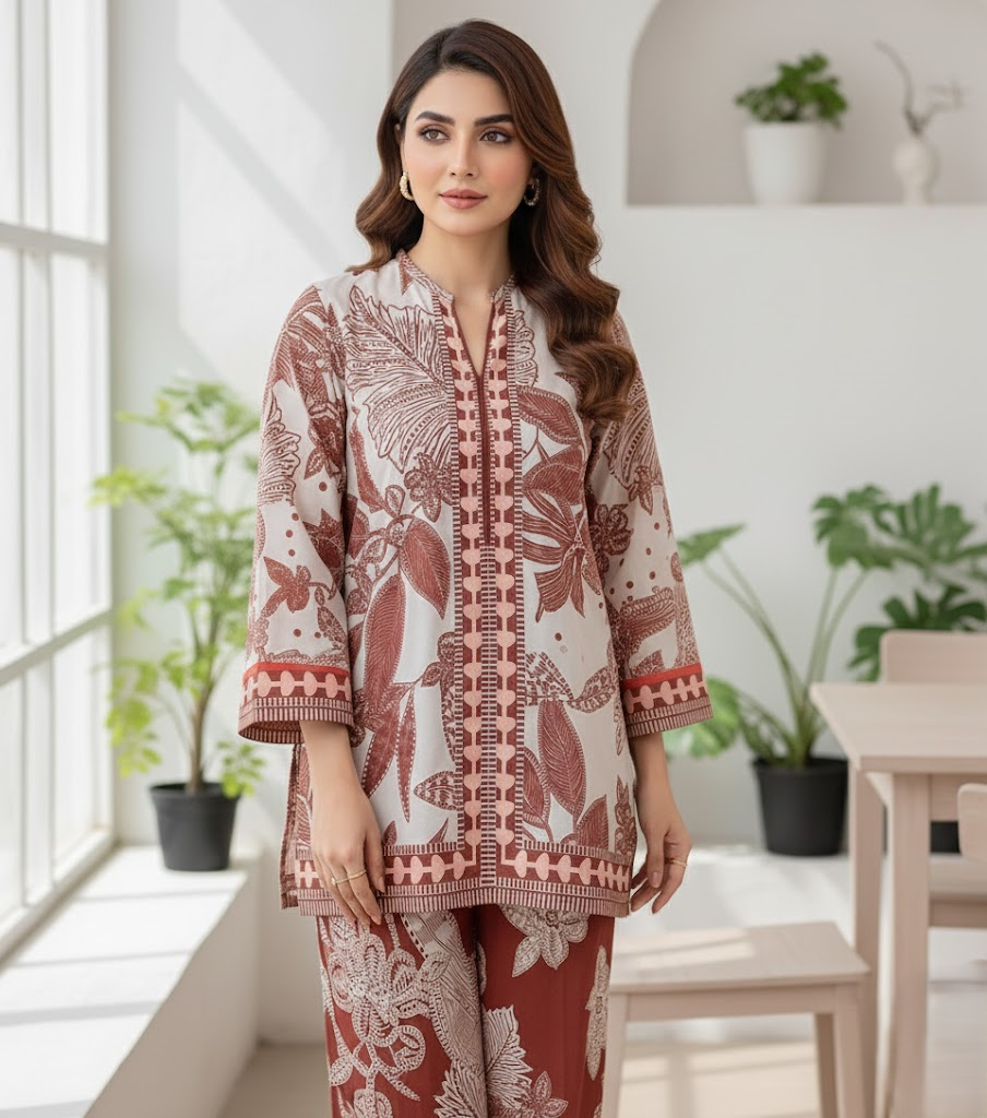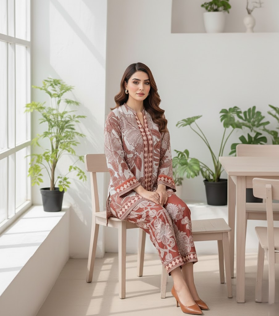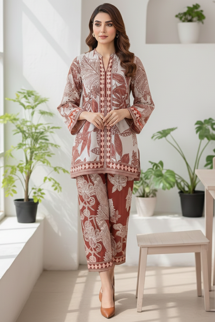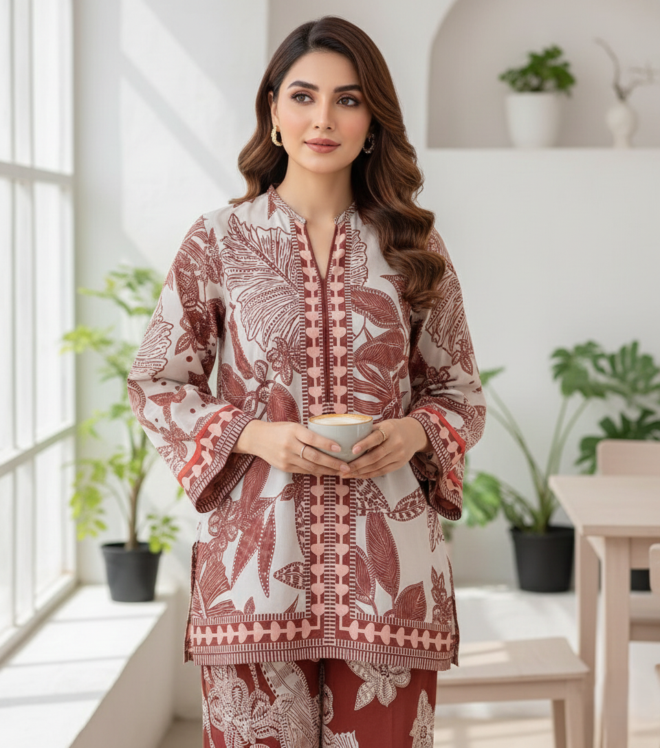 This stunning printed shirt and trouser is crafted from a viscose mix with lawn—combining the breathability of lawn with the soft, flowy drape of viscose for all-day comfort and style.