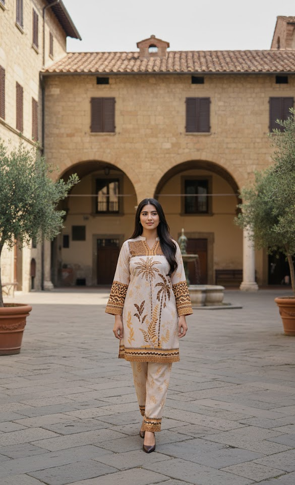 Exude timeless elegance in our premium Swiss lawn coord set, designed for the modern woman who values both comfort and style. Crafted from soft, breathable Swiss lawn, this ensemble features intricate mustard and beige botanical prints that add a touch of sophistication to your everyday look. The straight-cut silhouette offers a graceful fit, perfect for daytime outings or relaxed gatherings. Elevate your wardrobe with this versatile piece that combines refined design with effortless charm.